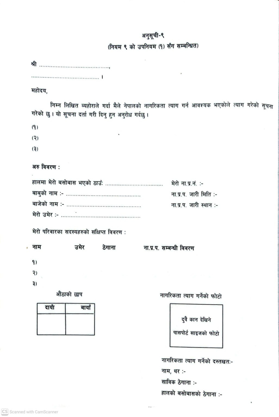 नाबालक परिचप पत्र पाउँ बारे निवेदन फारम